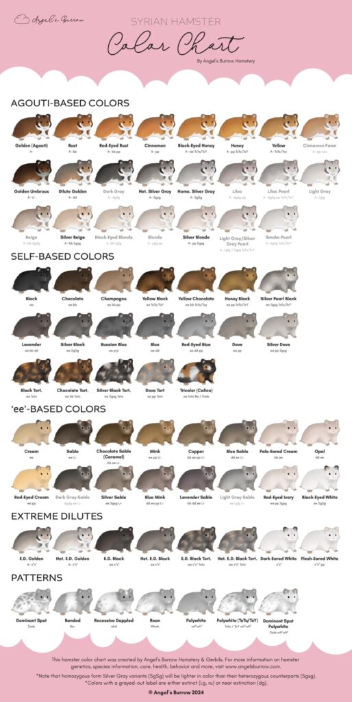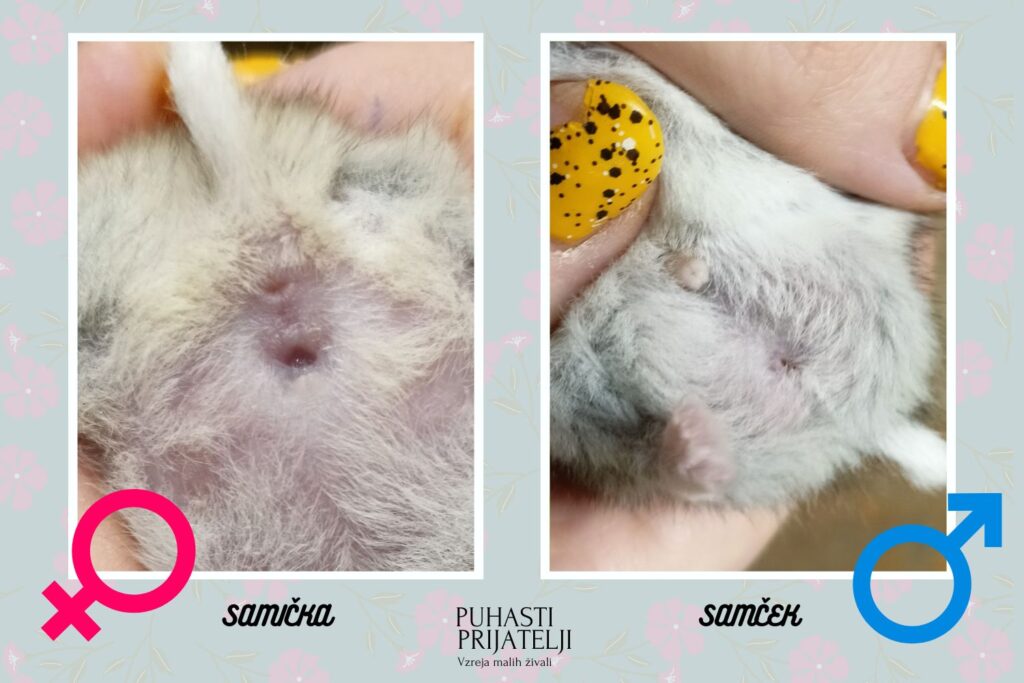 SPLOŠNE INFORMACIJE O HRČKIH 11 Okt 2024 Viktorija Krajnik Categories: O hrčkih 0 Comments ZLATI HRČEK ZNANSTVENO IME: Mesocricetus auratus SLOVENSKO IME: zlati hrček PREHRANJEVANJE: vsejedi PRIČAKOVANA ŽIVLJENJSKA DOBA: 2 leti TRAJANJE BREJOSTI: 17 dni ŠTEVILO MLADIČEV NA GNEZDO:1-18 STAROST OB ODSTAVITVI: 4 tedne KONČNA TEŽA: 100-150 g SPOLNA ZRELOST: 6 tednov SOCIALNOST: samotarji NAŠE IZKUŠNJE Z NJIHOVO VZREJO: 6 let RUSKI HRČEK ZNANSTVENO IME: Phodopus sungorus SLOVENSKO IME: ruski hrček PREHRANJEVANJE: vsejedi PRIČAKOVANA ŽIVLJENJSKA DOBA: 2 leti TRAJANJE BREJOSTI: 17 dni ŠTEVILO MLADIČEV NA GNEZDO:1-12 STAROST OB ODSTAVITVI: 3-4 tedne KONČNA TEŽA: 20-40 g SPOLNA ZRELOST: 6 tednov SOCIALNOST: samotarji NAŠE IZKUŠNJE Z NJIHOVO REJO: 6 let ROBOROVSKI HRČEK ZNANSTVENO IME: Phodopus roborovskii SLOVENSKO IME: roborovski hrček PREHRANJEVANJE: vsejedi PRIČAKOVANA ŽIVLJENJSKA DOBA: 2 leti TRAJANJE BREJOSTI: 17 dni ŠTEVILO MLADIČEV NA GNEZDO:1-7 STAROST OB ODSTAVITVI: 3-4 tedne KONČNA TEŽA: 20 g SPOLNA ZRELOST: 6 tednov SOCIALNOST: samotarji NAŠE IZKUŠNJE Z NJIHOVO REJO: 6 let LOČEVANJE SPOLOV PRI RUSKIH HRČKIH LOČEVANJE SPOLOV PRI ZLATIH HRČKIH BARVE IN VZORCI ZLATIH HRČKOV