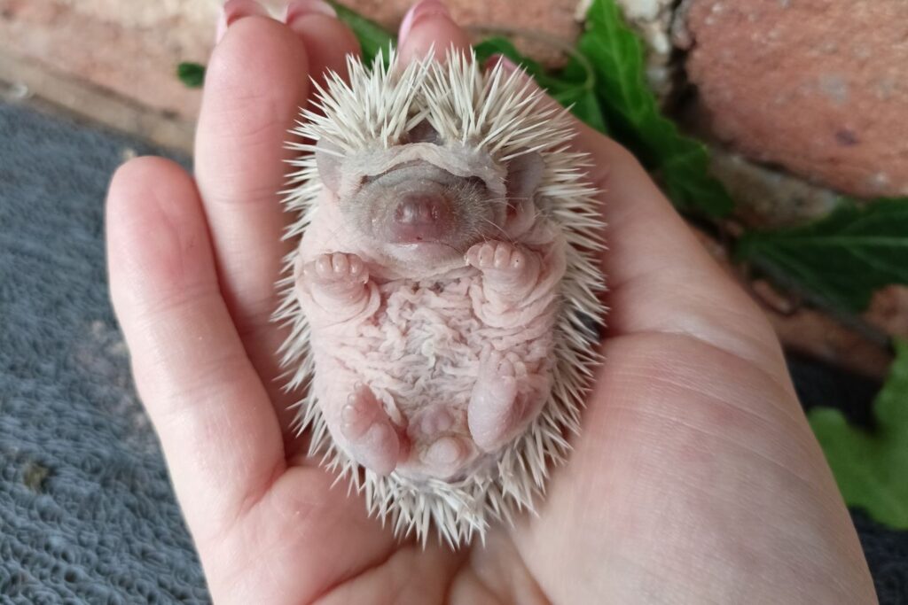 Ježka nežno objamemo z obema rokama. Če nismo vajeni rokovanja, si lahko pomagamo z rokavicami, saj bodice lahko nekoliko pikajo. Ko ježka dvignemo, ga obrnemo tako, da so nogice obrnjene navzdol, kar ga spodbudi, da se odpre in začne raziskovati okolico. Če pa ježka držimo na hrbtu, bo najverjetneje ostal zavit v klobčič.